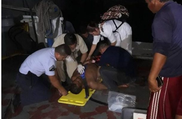 En el momento de la llegada del paciente a puerto seguro, fue revisado por personal de Sanidad Naval donde se le diagnosticó descompresión y posteriormente fue trasladado en una ambulancia perteneciente a la Tercera Zona Naval a un hospital de la localidad para recibir atención médica especializada.