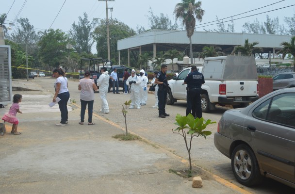 Oficiales periciales de la FGR especializados en búsqueda de fosas clandestinas hicieron labores de investigación al interior de este bien inmueble ubicado en la calle de Díaz Mirón con Bravo, en plena zona centro de Coatzacoalcos.