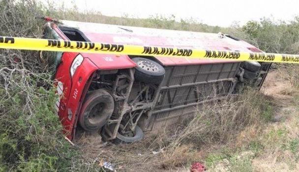 Una persona muerta y 16 pasajeros heridos, fue el saldo oficial de un trágico accidente suscitado ayer por la madrugada en el estado de Tamaulipas, la unidad protagonista fue un autobús de la línea ADO que había salido de Martínez de la Torre con destino a Reynosa, misma que fue atacada a pedradas por criminales que tras los hechos se dieron a la fuga.
