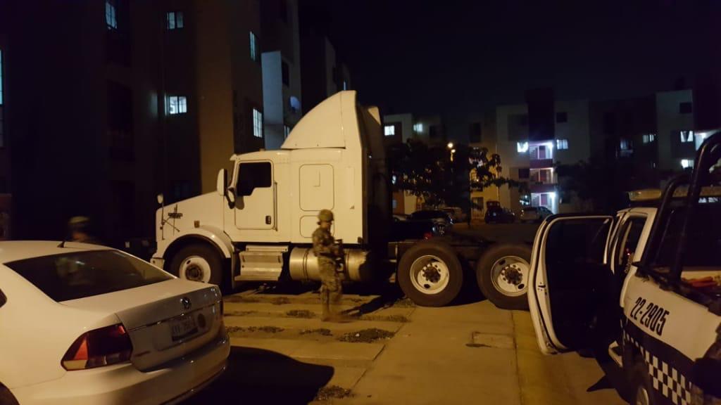 En una segunda acción, en recorridos de disuasión y reconocimiento urbano, se ubicó en una calle al poniente de la ciudad, un vehículo tipo tracto camión que contaba con reporte de robo de fecha 18 de mayo del año en curso.