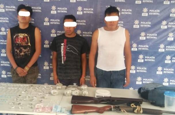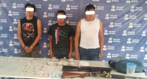 En recorridos de prevención y vigilancia en este municipio, efectivos de la Secretaría de Seguridad Pública (SSP) detuvieron a tres hombres que portaban armas de fuego y distintos tipos de drogas.