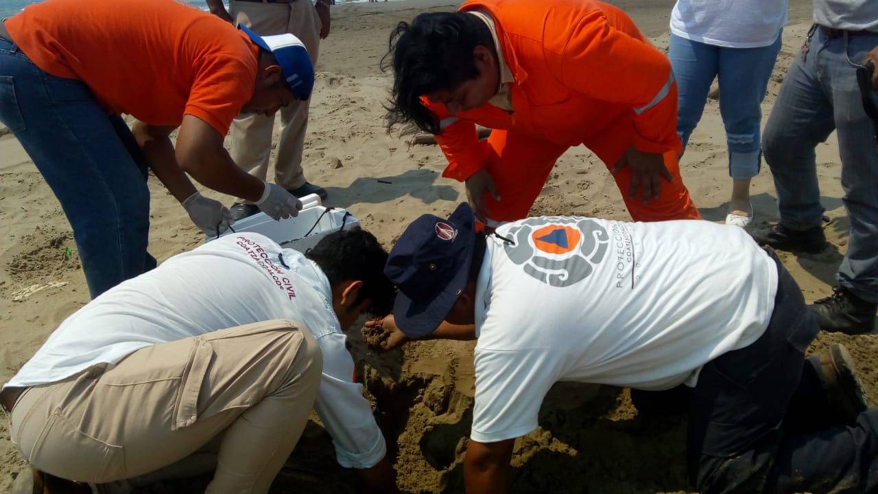 En total, los elementos de Protección Civil lograron rescatar 197 huevos de tortuga marina, que fueron puestos a disposición de la Procuraduría Federal de Protección al Medio Ambiente delegación Coatzacoalcos.