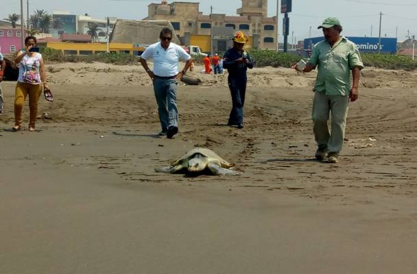 Elementos de Protección Civil de Coatzacoalcos reportaron la arribazón de dos tortugas marinas playas de Coatzacoalcos que depositaron sus huevos en nidos.