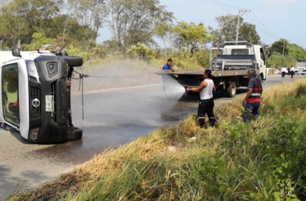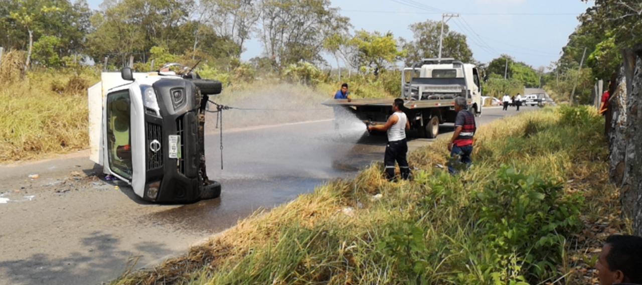 Fue el taxi 187 el que impactó a la camioneta de la empresa Sonigas, de Minatitlán y esta terminó volcada.