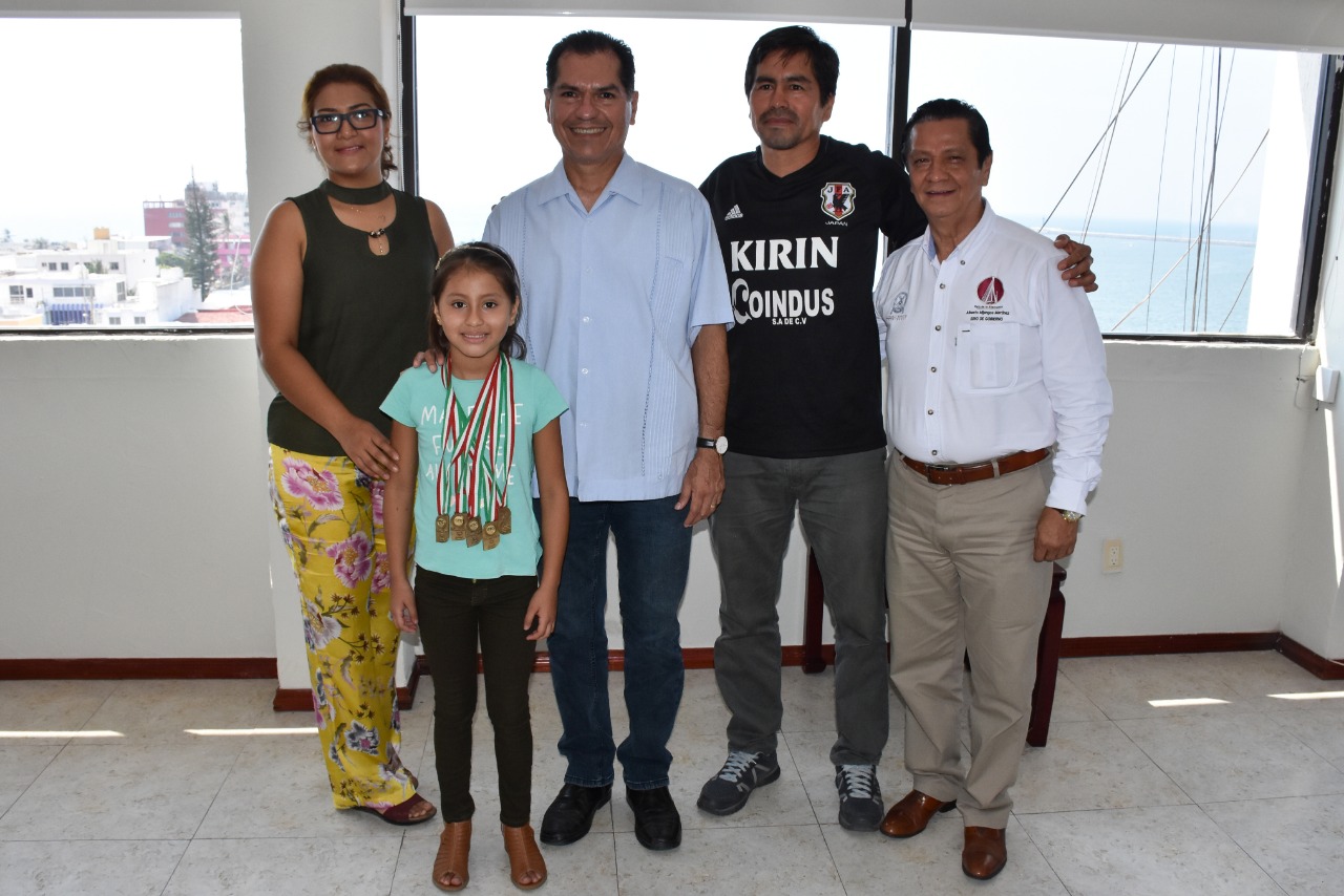 Con tan sólo 8 años, Katherine Garduza Cortés puso el nombre de Coatzacoalcos y de Veracruz muy en alto, tras ganar cuatro medallas, tres de oro y una de plata, en la competencia Nacional de Natación desarrollada en León, Guanajuato; por ello fue recibida y reconocida por el Presidente Municipal, Víctor Manuel Carranza Rosaldo.