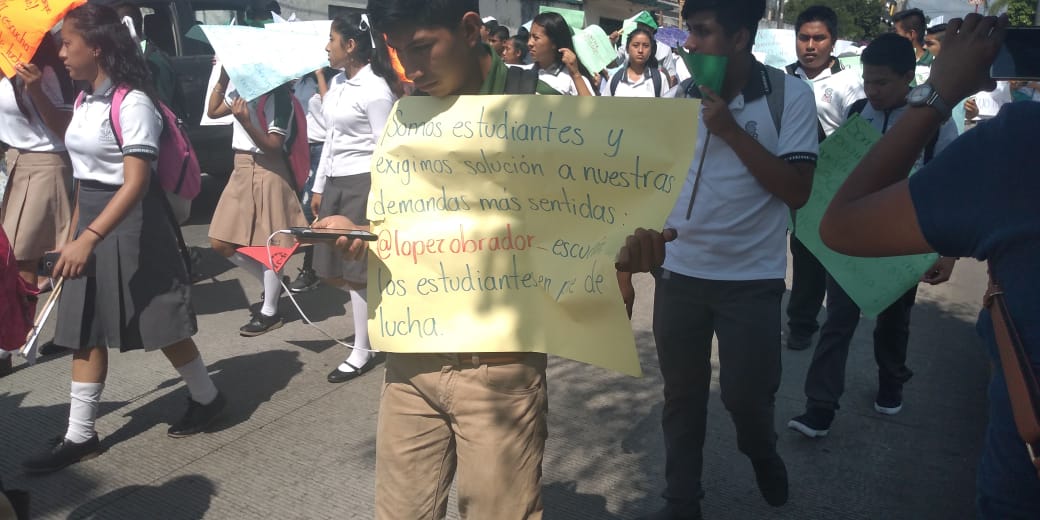 “Esta marcha es seccional, el día de hoy estamos una representación del Cobaev 46 y una representación del Cecytev 31 del municipio de Coetzala, debido a que no se ha dado entrega a la totalidad de Becas en toda la matrícula de las escuelas”.