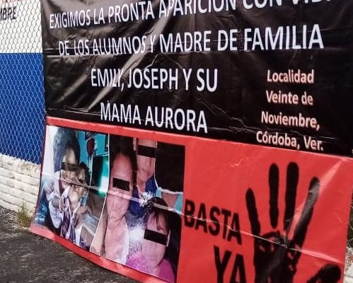 Padres de familia de la escuela Primaria Estatal José María Pino Suárez, ubicada en la congregación de 20 de Noviembre del municipio de Córdoba se manifestaron en exigencia de la aparición con vida de una familia (mamá y 2 niños) de esa comunidad.