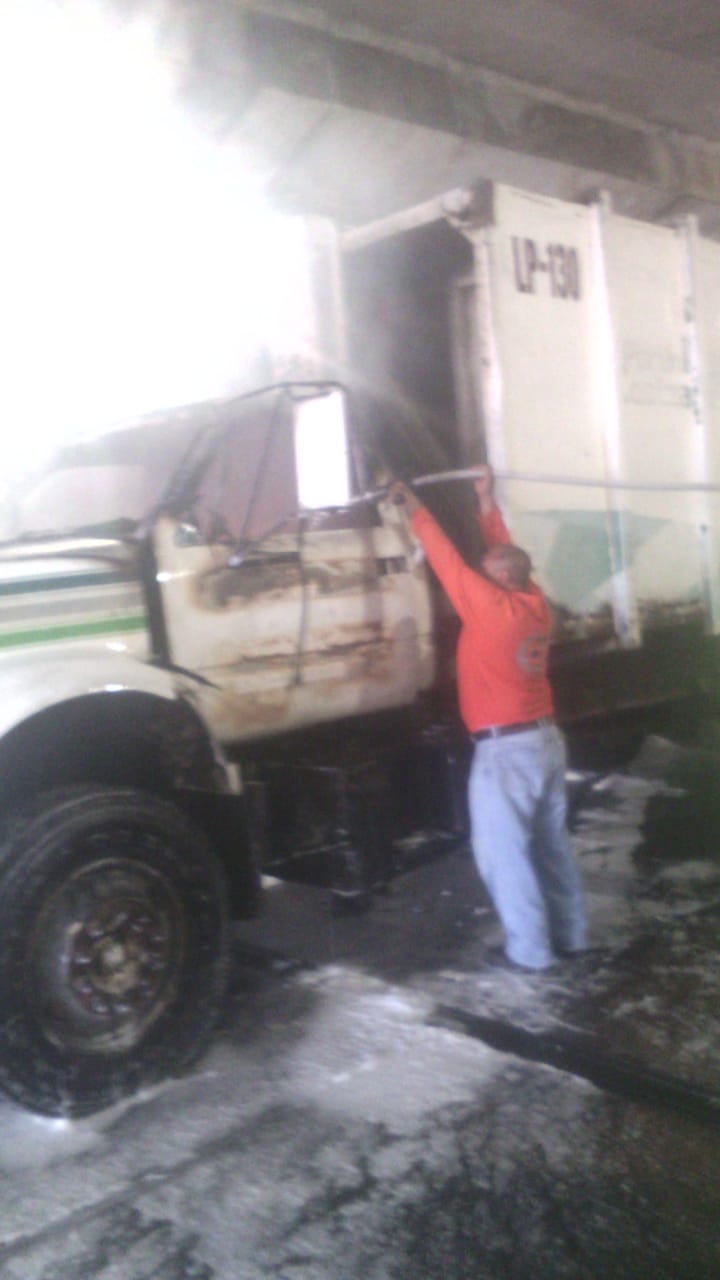 Durante esta tarde, se registró un incendio de un camión recolector de basura al interior del Túnel Sumergido de Coatzacoalcos.
