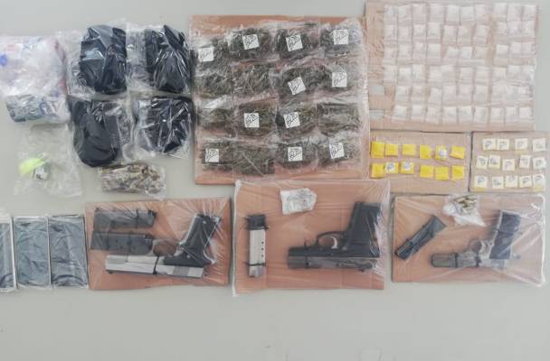 Elementos de la Secretaría de Seguridad Pública (SSP) detuvieron a tres individuos cuando circulaban en un vehículo con reporte de robo, además de asegurarles tres armas de fuego, enervantes y estupefacientes.
