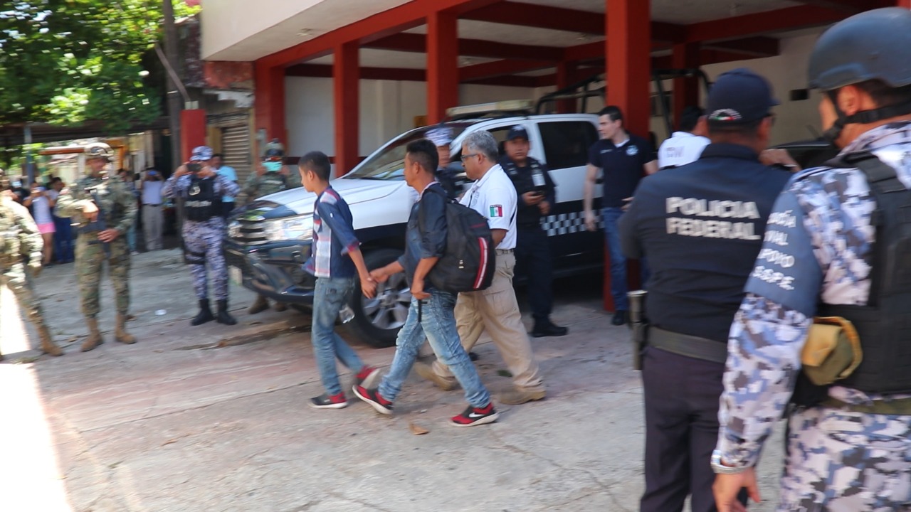 Durante el operativo para asegurar a los indocumentados participaron elementos de la Policía Naval, Policía Federal y del Instituto Nacional de Migración (INM).