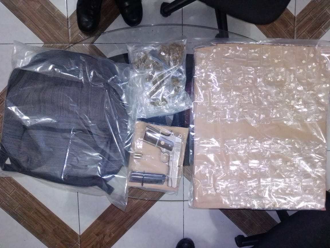 Esta acción fue derivada de una denuncia anónima y trabajos efectuados en materia de Seguridad Pública, por lo que se implementó un operativo de persuasión y disuasión del delito en inmediaciones del municipio de Coatzacoalcos, logrando detener a dos presuntos infractores de la ley, a quienes se les fue leída la Cartilla de Derechos Humanos, mismos que fueron puestas a disposición de las autoridades competentes junto con la presunta droga y armamento asegurado, para la integración de la carpeta de investigación correspondiente, a efecto de que se determine su situación jurídica.