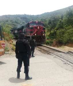 Elementos del Instituto de la Policía Auxiliar y Protección Patrimonial para el Estado de Veracruz (IPAX), que brindan seguridad a Ferrosur repelieron una nueva agresión de sujetos que intentaron despojar al convoy del ferrocarril de su carga, en la zona conocida como La Pera en este municipio.