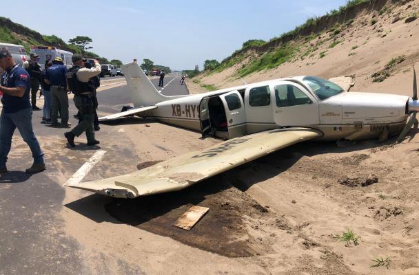 A las 13:16hrs se registró el aterrizaje de emergencia de una aeronave de ala fija Beech Bonanza B36T matrícula XB-HYS en la nueva autopista Boca del Río – Antón Lizardo, a la altura del hotel Coco Aventura.