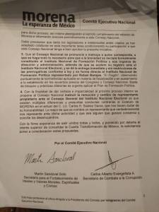 También se impulsó y aprobó la creación de una comisión de «notables», coorganizadora de la elección interna, con Pedro Miguel al frente, junto con Enrique Dussel, Armando Bartra, Bernardo Bátiz y la senadora Citlali Hernández.