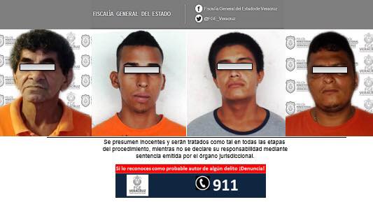 Jairo “N”, Rubén “N”, Carlos “N” y Saulo “N” fueron detenidos por la probable comisión de los hechos ocurridos el pasado 1 de junio del año en curso, en un inmueble ubicado en la colonia La Sabana delas ciudad de Las Choapas, donde probablemente lesionaron al hoy occiso con proyectiles de arma de fuego.