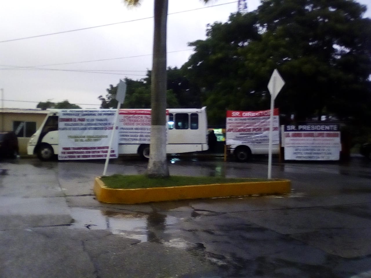 Se manifiestan contratistas afuera de la Refinería Minatitlán