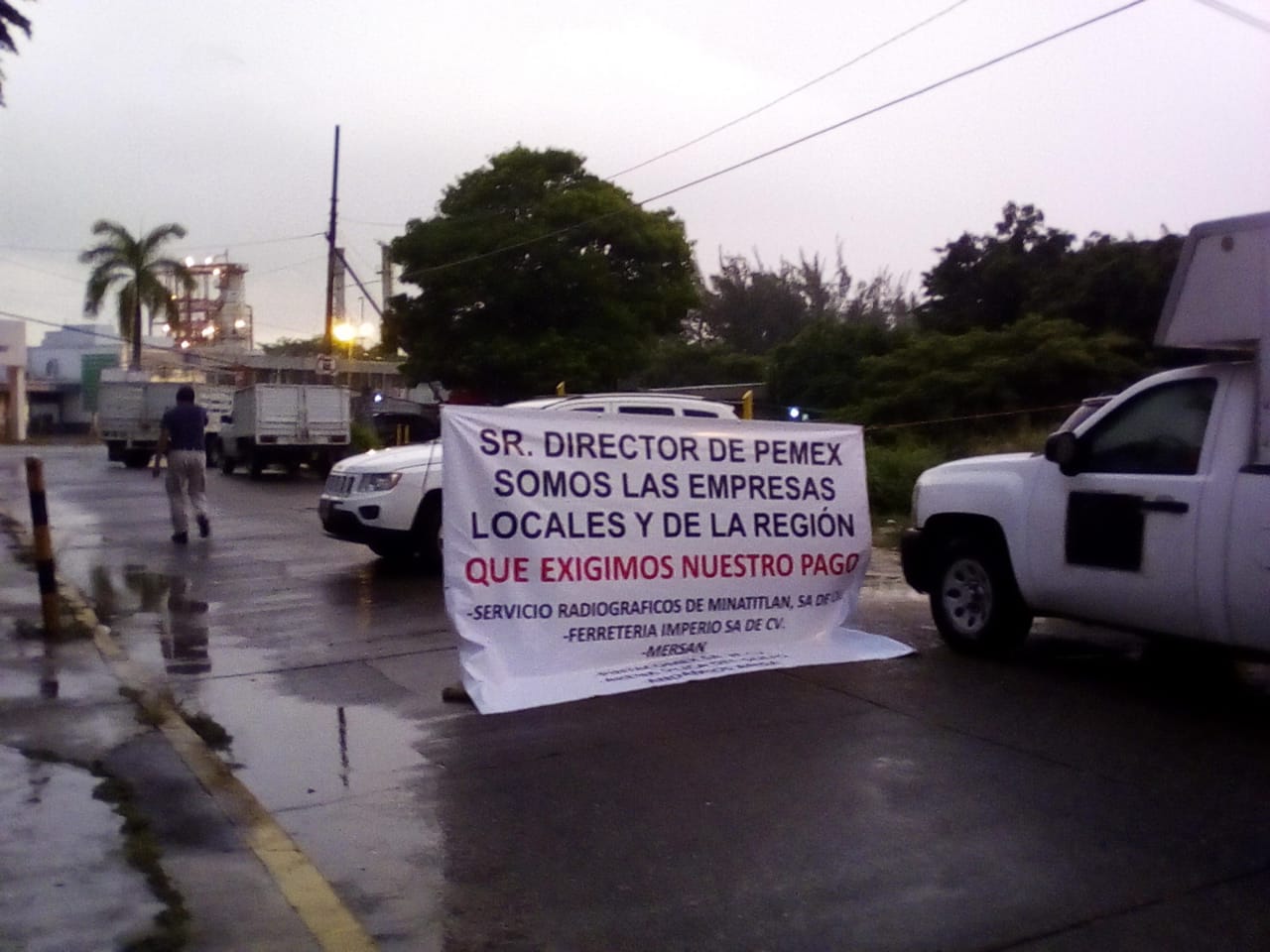 Empresas contratistas que trabajaron para Petróleos Mexicanos desde el 2018, se manifestaron afuera de la refinería Lázaro Cárdenas de Minatitlán, en demanda del pago por las actividades hechas y que no han sido saldadas.