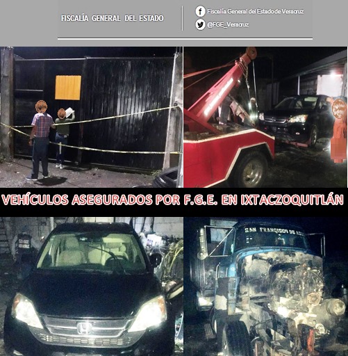 La Fiscalía Regional de la zona centro Córdoba y agentes de la Policía Ministerial realizaron un operativo coordinado en el cual participó personal de la Delegación de Servicios Periciales y elementos de la Secretaría de Seguridad Pública del Estado (SSP), logrando asegurar dos vehículos automotores con reporte de robo; así como un motor, diversas placas de circulación y piezas automotrices.