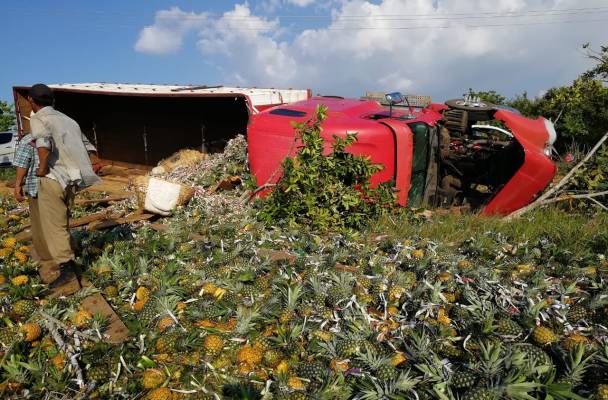 Lamentable muerte encontraron dos hombres trabajadores que se dedicaban a la siembra y cosecha de la piña, los dos viajaban a bordo de un camión trotón, color rojo, donde el conductor de la unidad perdió el control en una de las curvas, de la carretera Estatal que conduce de Juan Rodríguez Clara, al entronque con la autopista, saliéndose del camino y dejando sin vida de manera inmediata a estas dos personas.