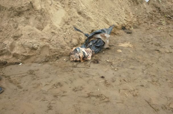 Tuvieron que escarbar para encontrar estos restos humanos encontrados al interior de una bolsa de basura.