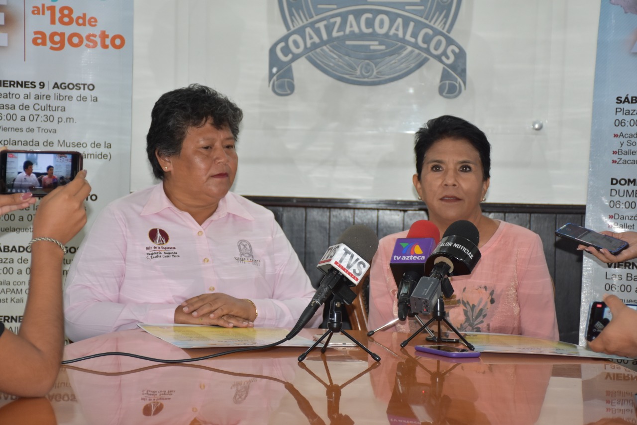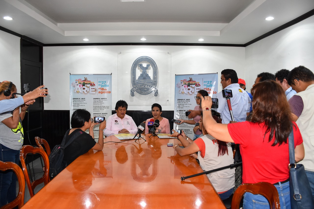 Ante los representantes de los diversos medios de comunicación, la Regidora Segunda Eusebia Cortés Pérez, encargada del ramo de Cultura y Recreación, y la Maestra Alba Malpica, Directora de Cultura, dieron a conocer la cartelera del Programa “Verano con Arte”, donde en una de sus jornadas se incluye “La Guelaguetza”.