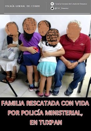 Este jueves fue reportada a la guardia de la Policía Ministerial en la Zona Norte Tuxpan, la desaparición de una familia conformada por cinco integrantes, originarios de la Ciudad de México, se proporcionaron datos que revelaban el arribo de dicha familia a la Ciudad de Tuxpan el pasado día 22 de Julio del año en curso, cuando se hospedaron en un hotel situado en esta ciudad y su salida fue el día 24 del mismo mes; desde ese momento se desconoció su ubicación y fue cancelada toda comunicación telefónica con sus familiares, por lo que se presumió la comisión de un secuestro.