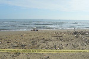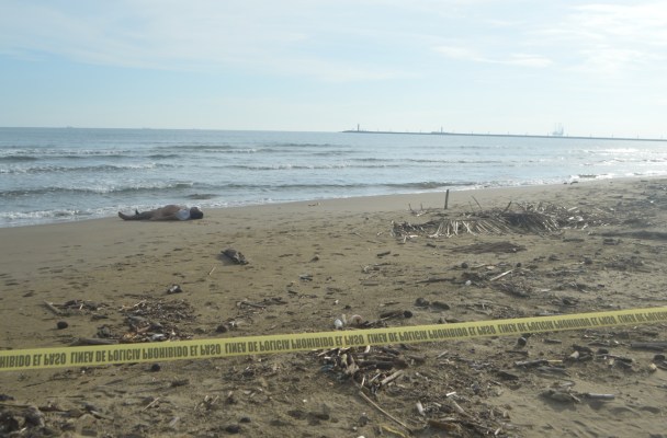 El cuerpo es de un sujeto masculino de más de 30 años de edad, no identificado, que tiene heridas en la frente de lo que al parecer sería un orificio de arma de fuego por lo que se presume fue ejecutado en la misma playa donde lo encontraron.
