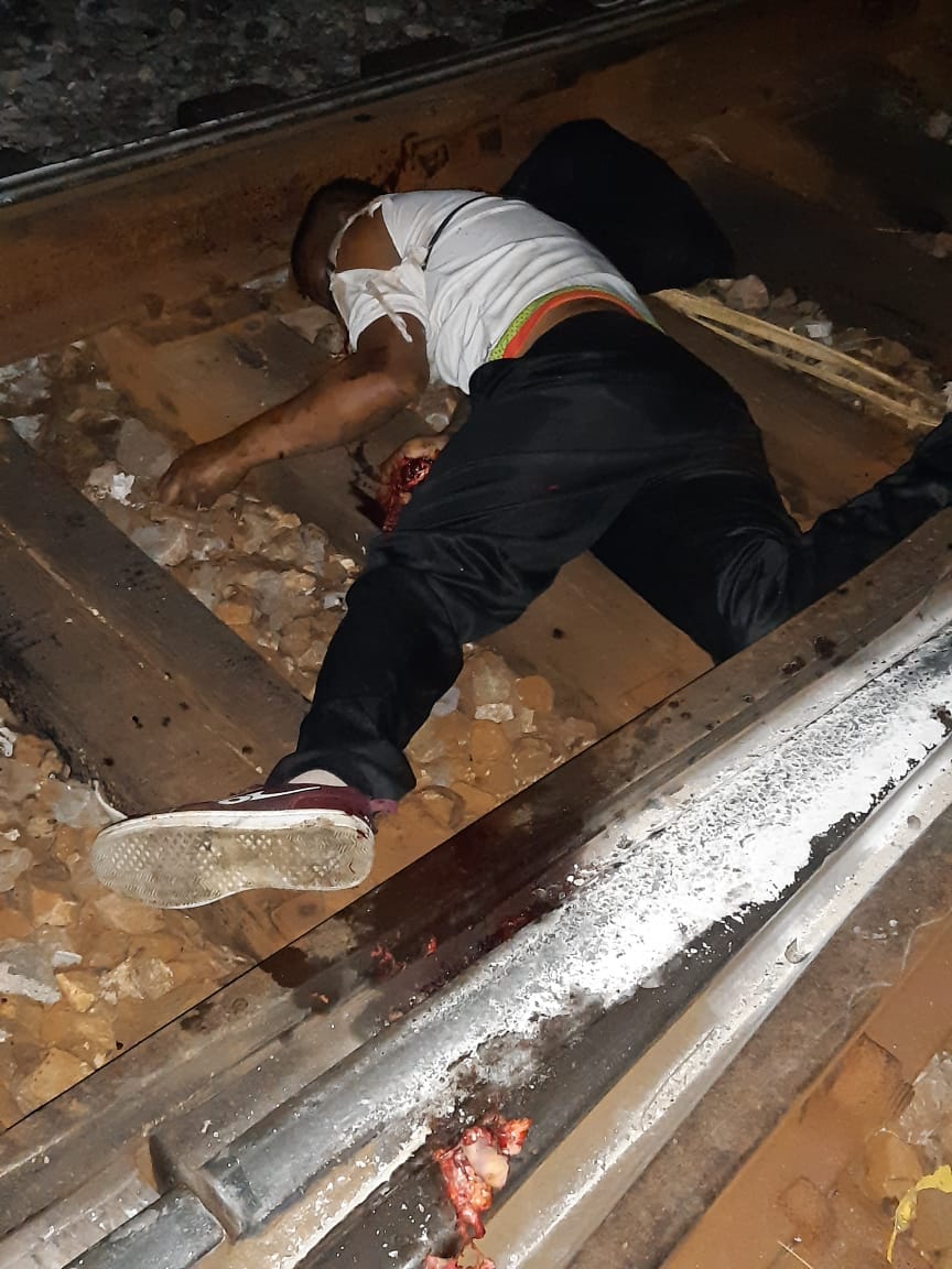 El occiso, quien vestía playera blanca y pantalón negro, resultó con lesiones en sus manos y pies, después de ser golpeado por el tren.