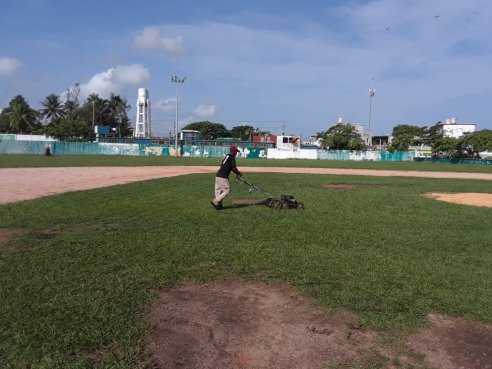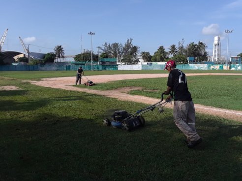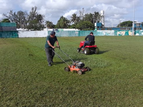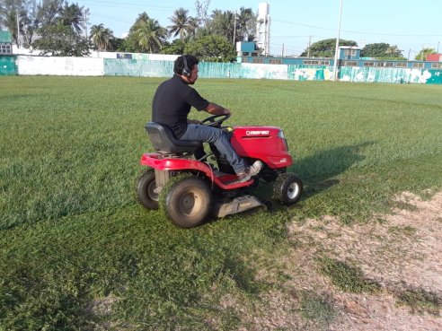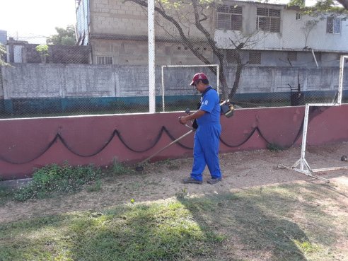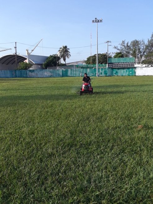 Coatzacoalcos, Ver.- Continuando con las labores de limpieza de las diversas unidades deportivas pertinentes al municipio, personal del área de Mantenimiento de la Dirección Municipal del Deporte realizó el podado de la cancha del Campo Deportivo Miguel Alemán.