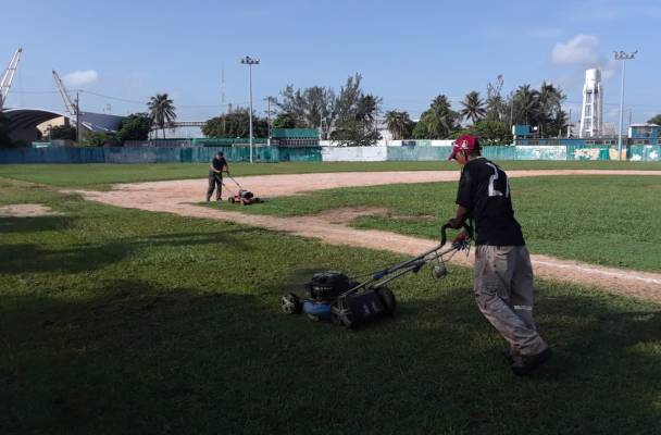 Coatzacoalcos, Ver.- Continuando con las labores de limpieza de las diversas unidades deportivas pertinentes al municipio, personal del área de Mantenimiento de la Dirección Municipal del Deporte realizó el podado de la cancha del Campo Deportivo Miguel Alemán.