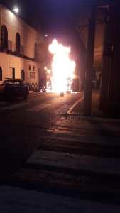 A las fueras de la comandancia llegaron taxistas quienes exigieron la presencia de la alcaldesa, Baldinucci Tejeda Colorado. Y al no obtener respuesta volcaron una patrulla y le prendieron fuego.