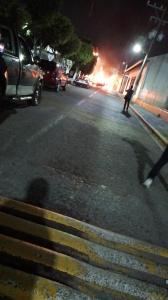 A las fueras de la comandancia llegaron taxistas quienes exigieron la presencia de la alcaldesa, Baldinucci Tejeda Colorado. Y al no obtener respuesta volcaron una patrulla y le prendieron fuego.
