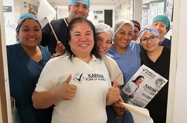 Transparencia, honestidad, lealtad al gremio sindical y a sus familiares son algunos de los principales lemas de la Enfermera Especializada Karina Gómez Alemán, candidata de la Planilla Blanca a la Secretaria General del Sindicato Nacional de Trabajadores del Seguro Social (SNTSS) Sección IV de Veracruz Sur.