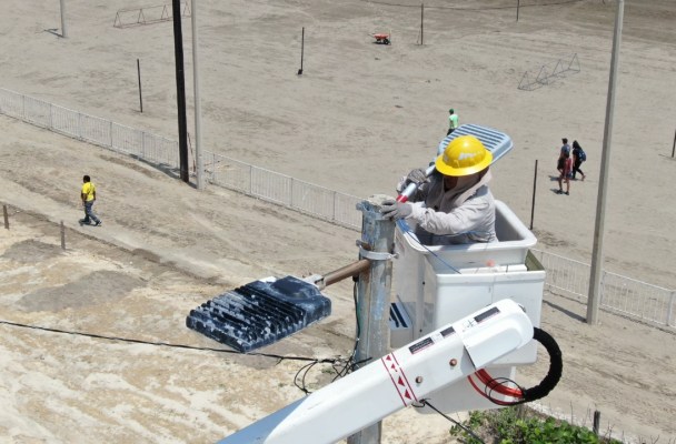 Independientemente de esto, estamos reponiendo las luminarias LED, así como se colocarán nuevos postes en la zona de la playa para iluminar las canchas de volibol que se habilitarán para llevar a cabo esta competencia de nivel nacional.