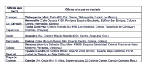 Las otras oficinas que cerraron (subdelegaciones) y cambiaron de ubicación: