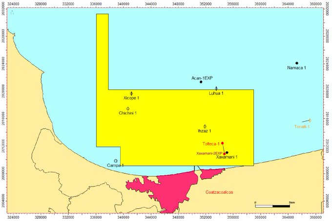Este nuevo pozo, el Tolteca-1EXP está millas atrás del pozo donde actualmente se encuentra laborando la plataforma Odin, haciendo labores exploratorias del pozo Xaxamani 1 y que es visible desde el malecón costero de Coatzacoalcos así como en Villa Allende.