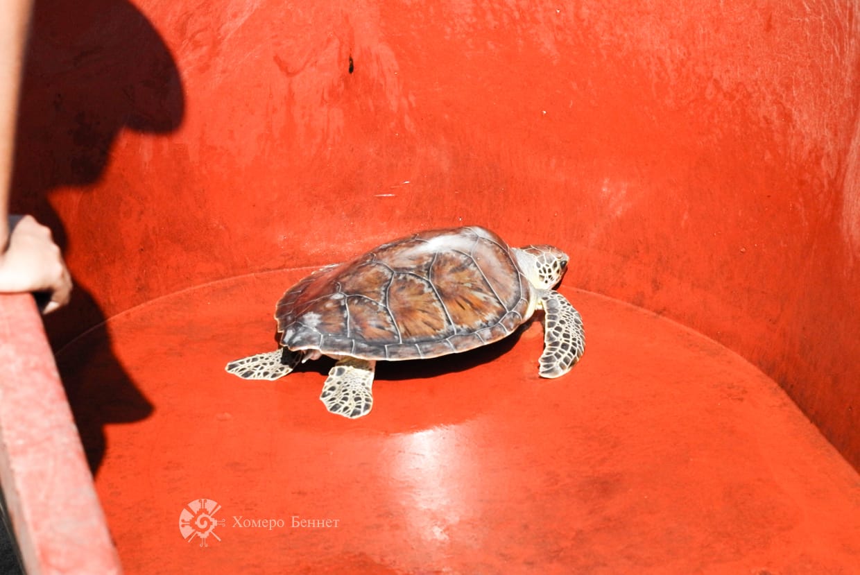 Este ejemplar de tortuga verde permanecía bajo resguardo del Ayuntamiento de Agua Dulce, cuya administración encabeza el alcalde Sergio Guzmán Ricárdez.