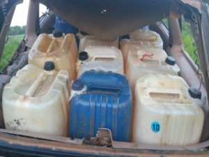 Al efectuar inspección visual, se avistaron dentro de mencionado vehículo: 11 contenedores con aproximadamente 440 litros de hidrocarburo, por lo que el personal naval, solicitó apoyo de una unidad tipo grúa para su traslado y posterior puesta a disposición.