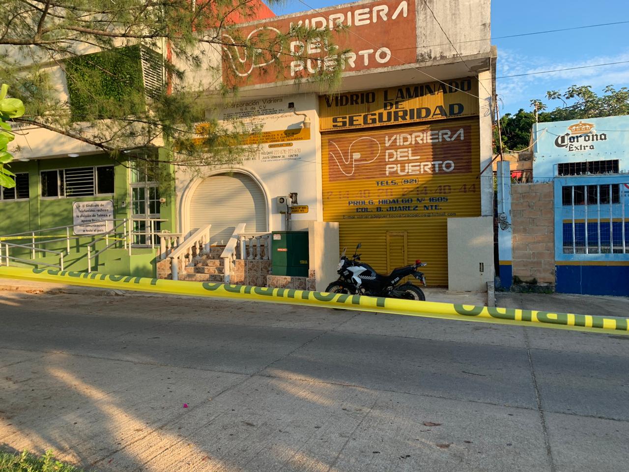 Sobre la banqueta, fueron halladas unas bolsas, también vendas y una bata de color azul, mismas que encontraron a la entrada de la empresa «Vidriera del Puerto».
