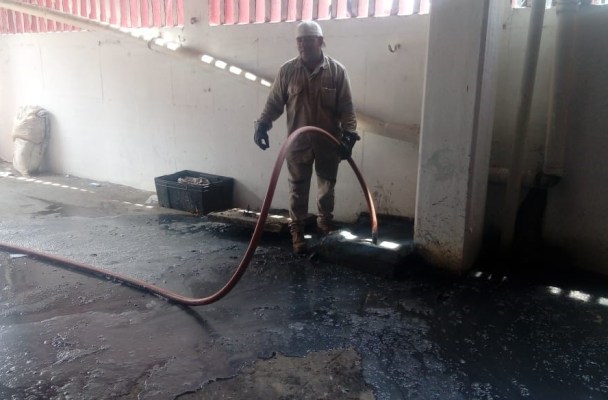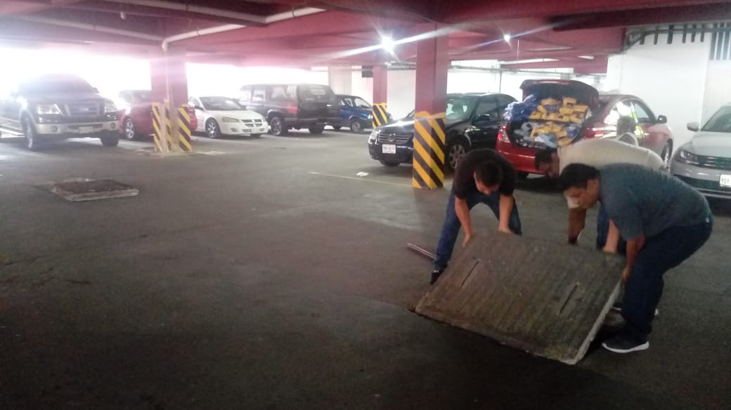 En este inmueble, el personal de la CAEV maniobró en las atarjeas en el interior y exterior del centro de abasto para retirar las aguas negras, jabonosas y llenas de grasa de este lugar.