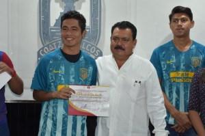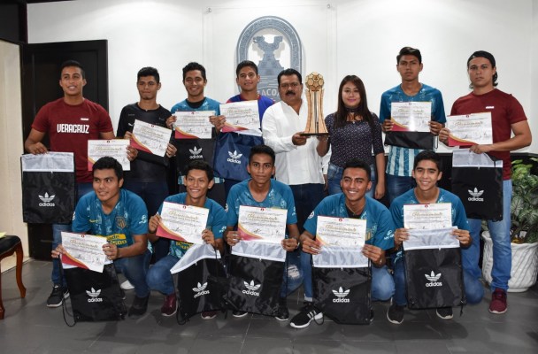 En la Sala de Juntas de la Presidencia Municipal, se llevó a cabo una sencilla ceremonia, donde se les entregó reconocimientos por su destacada labor deportiva a estos jóvenes nacidos en 1999, 2000 y 2001, que representan a Coatzacoalcos en esta categoría futbolística, y que luego de triunfar en el Campeonato Estatal desarrollado el pasado 11 de agosto, viajarán con el apoyo del Ayuntamiento al Campeonato Nacional.