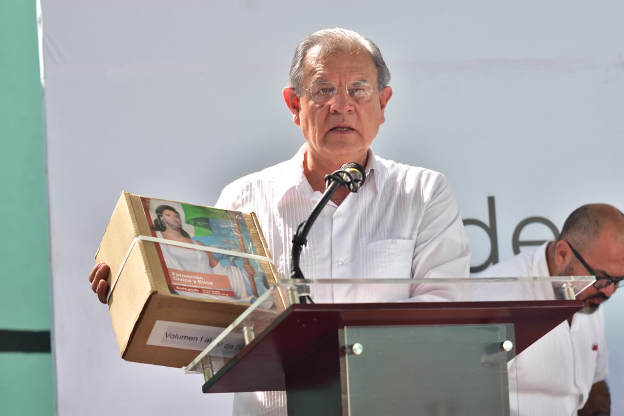 El Director General de la Comisión Nacional de Libros de Texto Gratuito, indicó: “En el estado hay 19 almacenes de libros de texto gratuito; a partir de este lunes se estarán repartiendo, cualquier anomalía avísenos, sean corresponsables de que lleguen a todos los sitios. Junto con el Gobierno de México, encabezado por el Presidente López Obrador, esforcémonos porque todos los niños, adolescentes y jóvenes del estado de Veracruz, tengan sus libros de texto”.