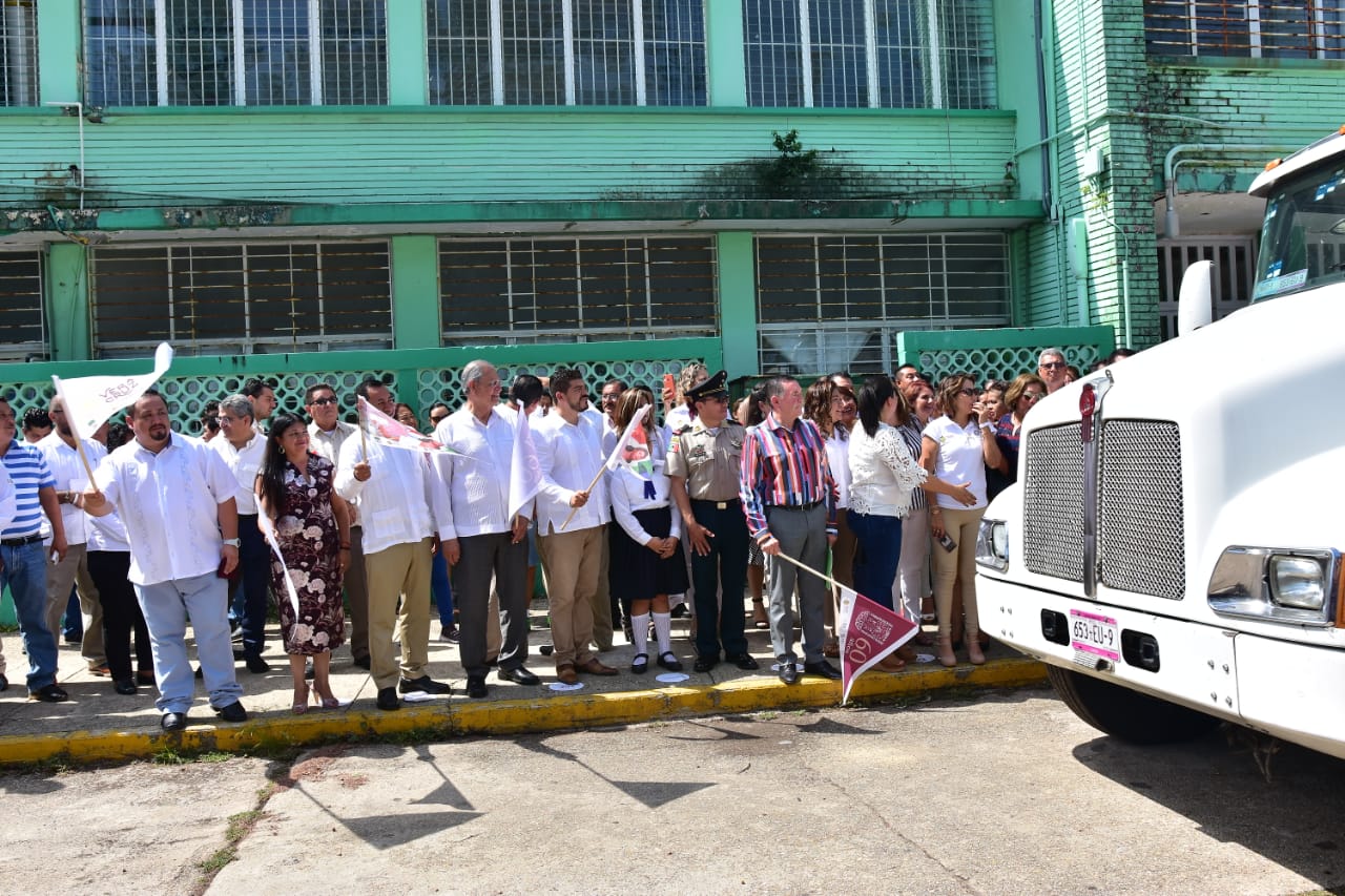 En la ceremonia que se realizó en la Escuela Primaria “Tomasa Valdés viuda de Alemán”, conocida como Artículo 123 o escuela de Petróleos, el Director General de la Comisión Nacional de Libros de Texto Gratuito, agradeció a las maestras y maestros, autoridades del Ejército y la Marina Armada de México, el apoyo que se recibe de ellos, para la distribución de los libros de texto gratuito.