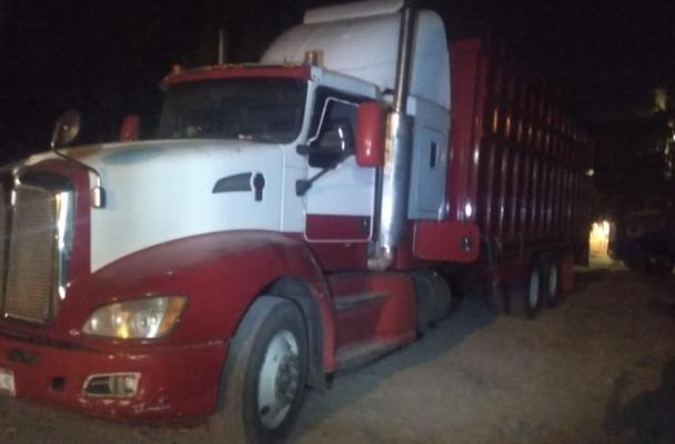 Tras una llamada al 911, elementos de la Policía Estatal se dirigieron al fraccionamiento Arboledas donde aseguraron dos camiones Kenworth, uno blanco con rojo y placas 53AL4G; el otro blanco con azul, razón social “Frutas Carmona” y láminas 44-AH-7X.