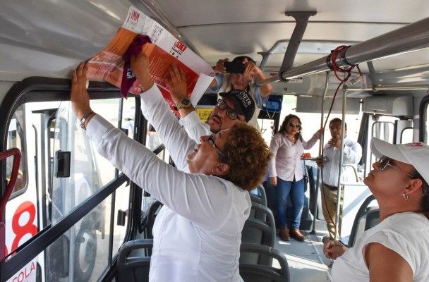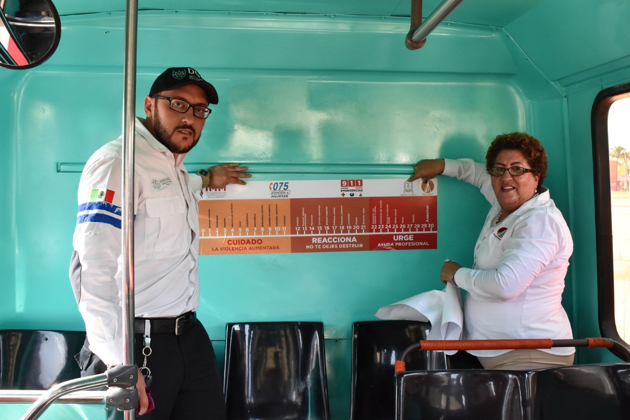 El Instituto Municipal de la Mujer (IMM), en coordinación con la Delegación General de Transporte del Estado (DGTE), realizaron la pega de calcomanías conocidas como “Violentómetro” en 20 unidades de Transporte Público de la ciudad; actividad que también contó con la asistencia de los elementos de la Policía Federal del área de Proximidad Social, en el estacionamiento de la Expo Feria.