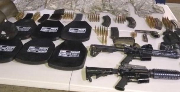 Al alcanzarlos, les aseguraron dos armas largas AR-15; una tipo Comando, sin matrícula, y una corta, Browning calibre 9 mm; así como dos chalecos tácticos, portaplacas balísticos, ropa tipo militar, una gorra, dos cascos Kevlar, nueve cargadores de arma larga, un cargador de 9 mm y 226 cartuchos útiles de distinto calibre.