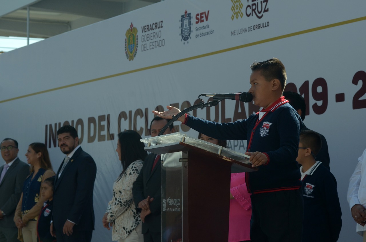 Luego de la participación del ballet folklórico y la banda de guerra, las autoridades entregaron de forma simbólica los paquetes de libros de texto gratuitos a alumnas y alumnos de primero a sexto grado. Del nivel básico, ingresaron en Veracruz un millón 490 mil 935 estudiantes, atendidos por 88 mil 572 docentes en 20 mil 744 escuela