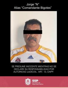 Durante la revisión, el presunto señalado se identificó como Jorge “N”, alias “el Comandante Bigotes”, supuestamente relacionado con un grupo delictivo en este municipio.