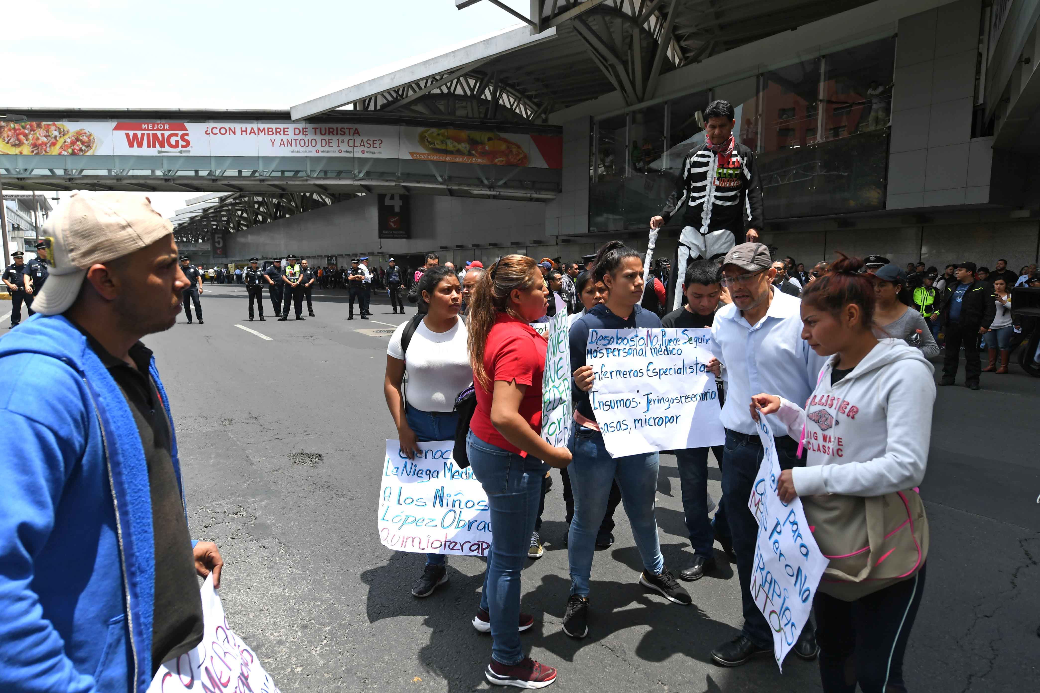 El bloqueo en las puertas 3 y 4 de la terminal duró cinco horas, después, los padres de familia fueron trasladados al Hospital Infantil, en donde los recibió Pedro Flores, titular de Administración y Finanzas de la Secretaría de Salud (Ssa) y les garantizó el abasto del metotrexato.