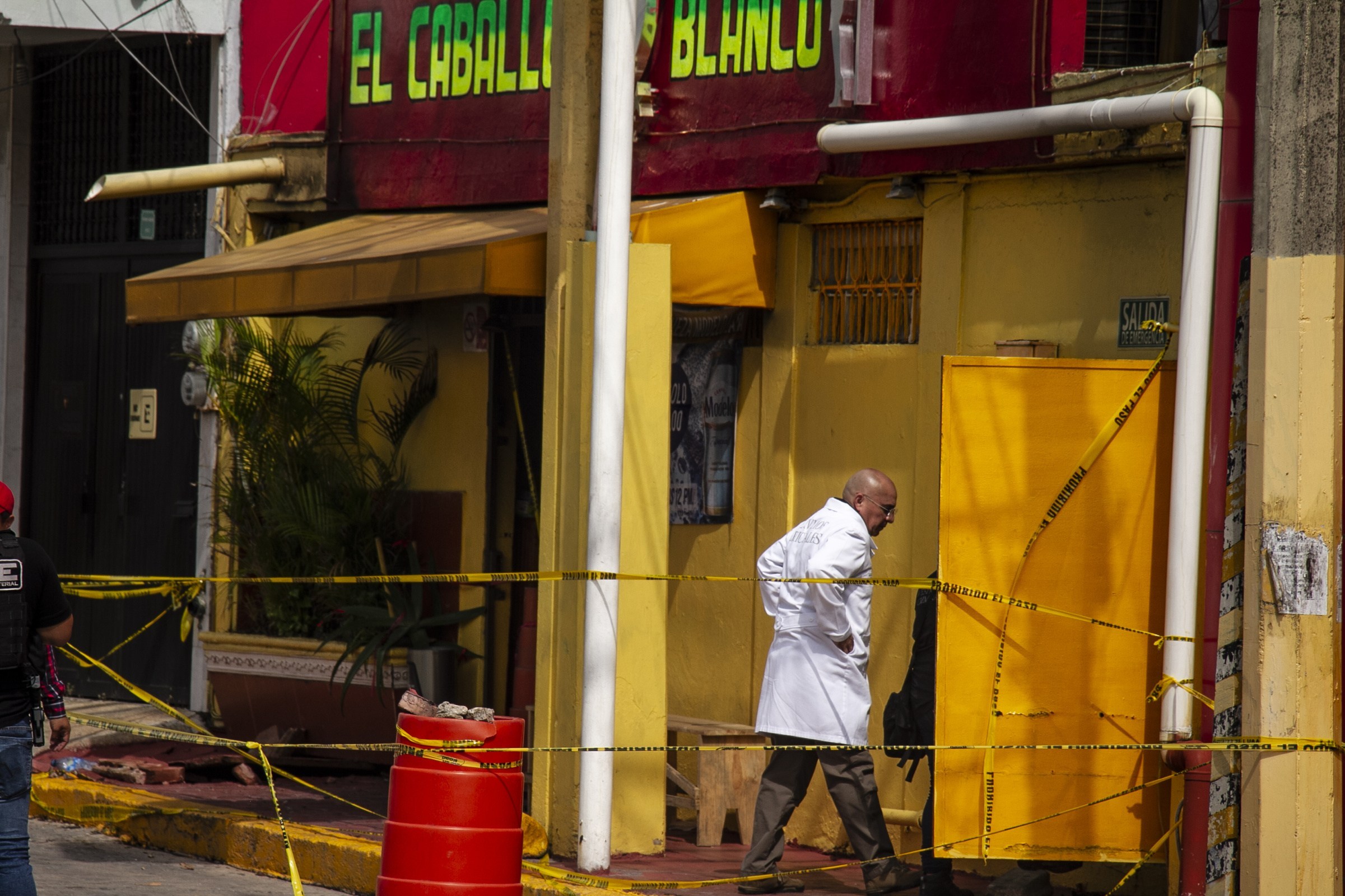 Elementos periciales de la Fiscalía General del Estado durante sus labores en el bar Caballo Blanco tras el ataque ocurrido el pasado 27 de agosto.